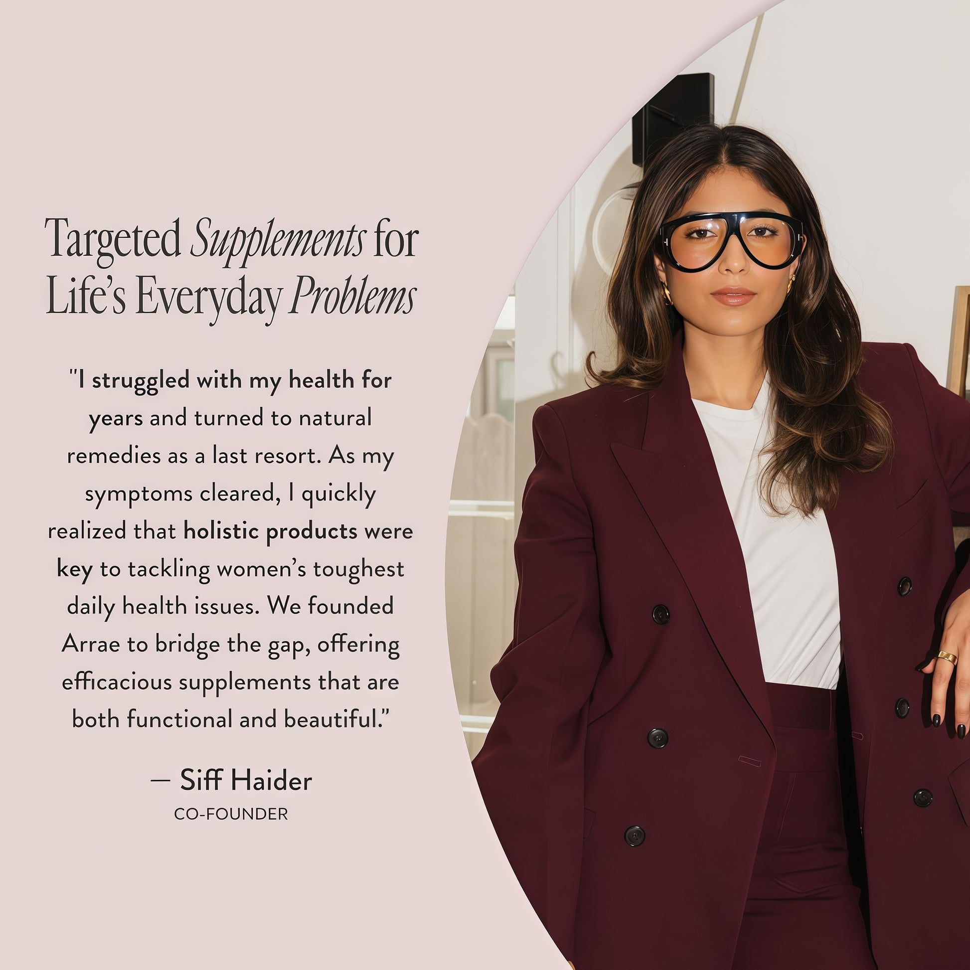 At Arrae, we're redefining what it means to feel good. Our science-backed supplements target the root cause of daily struggles like sleep, stress and metabolic dysfunction so you can show up as your best self.
